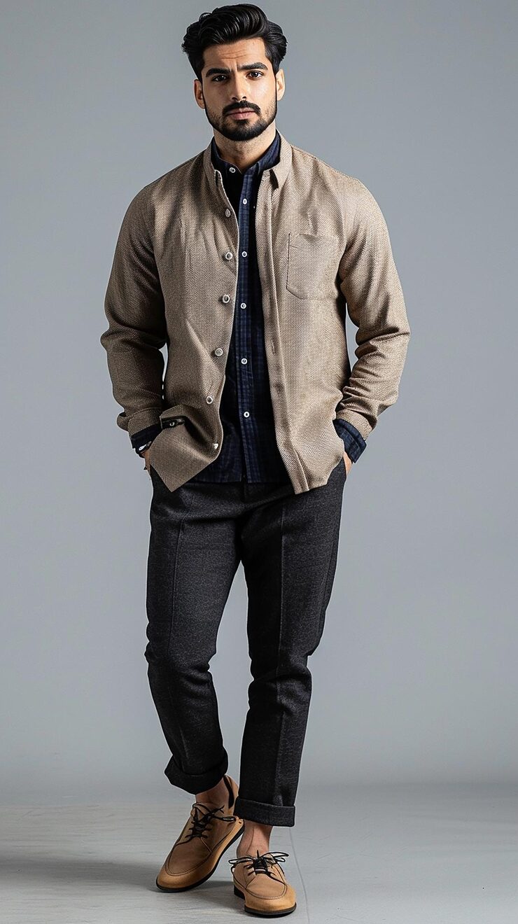This clothing isn't just about style—it says something about the man who wears it. It has weight, a quiet strength. Wool and leather hold their shape, like a man who knows who he is.
